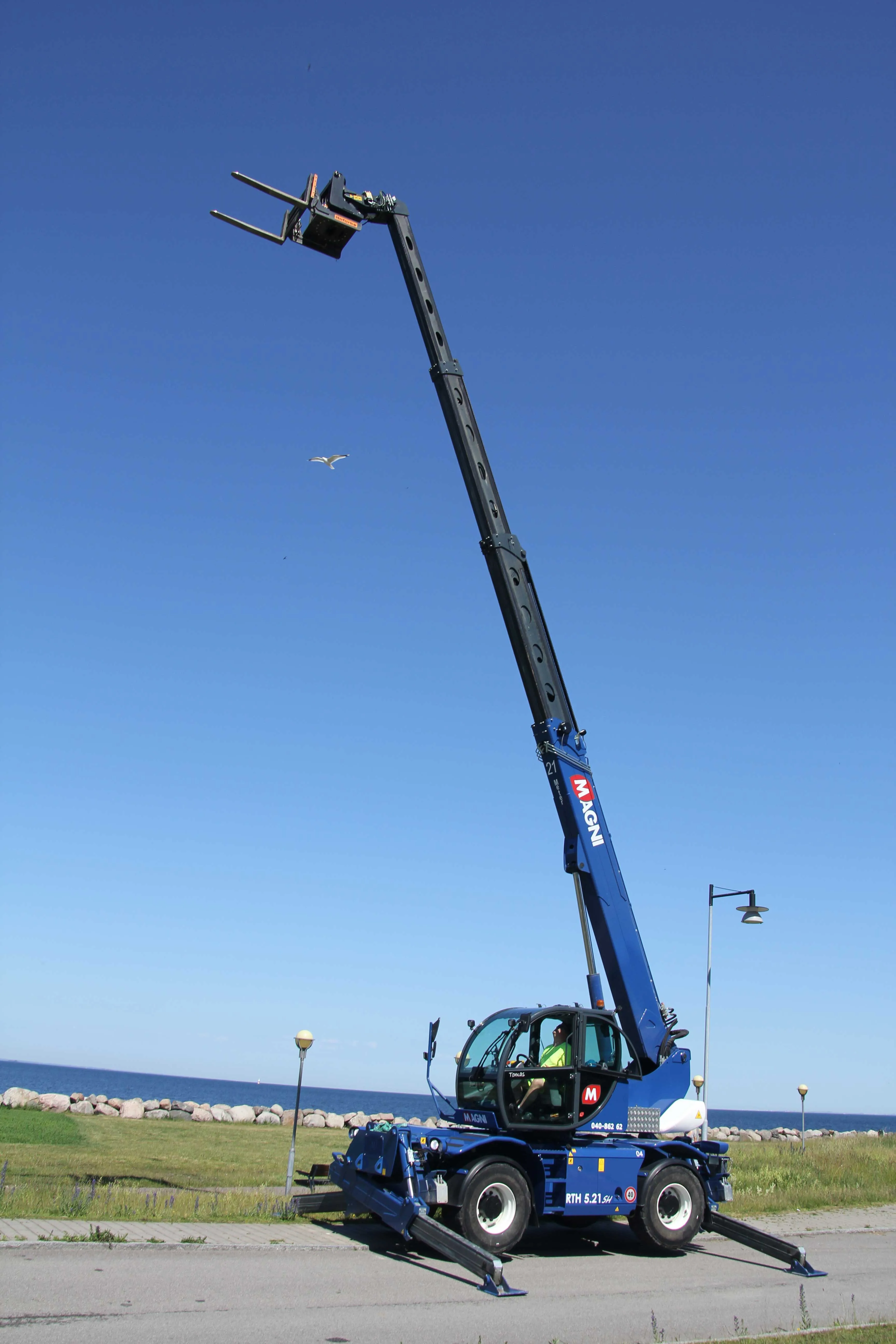 Magni RTH 5:21 är vår vanligaste modell. Maskinen kan komma utrustad med personkorg, vinsch, kranarm eller långgafflar för att uppfylla just era behov. Med vinschen monterad fungerar maskinen som en mindre mobilkran, men kan när behov finns, istället sadla om till personkorg för att sen arbeta som en lift.